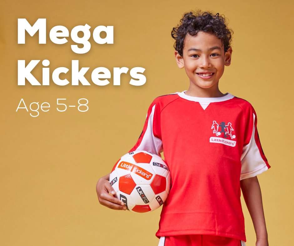 Our Mega Kickers program, designed for children aged 5 to 8, builds on earlier football skills and transitions players into real match scenarios. Sessions include a 20-minute match focused on fair play and applying game rules. Parent participation isn’t required, but parents are encouraged to stay and support as children progress.